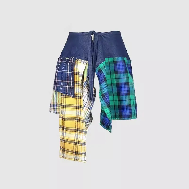 Denim Plaid Patchwork Skirt