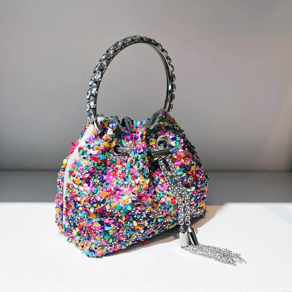 Shine all night with our Rhinestone Handled Crystal Clutch Bag, featuring a dazzling crystal-encrusted design and a chic rhinestone handle for added glamour. Perfect for parties, weddings, and special occasions, this elegant evening bag combines luxury style with practical functionality. Add a touch of sparkle to any outfit and make every moment unforgettable.